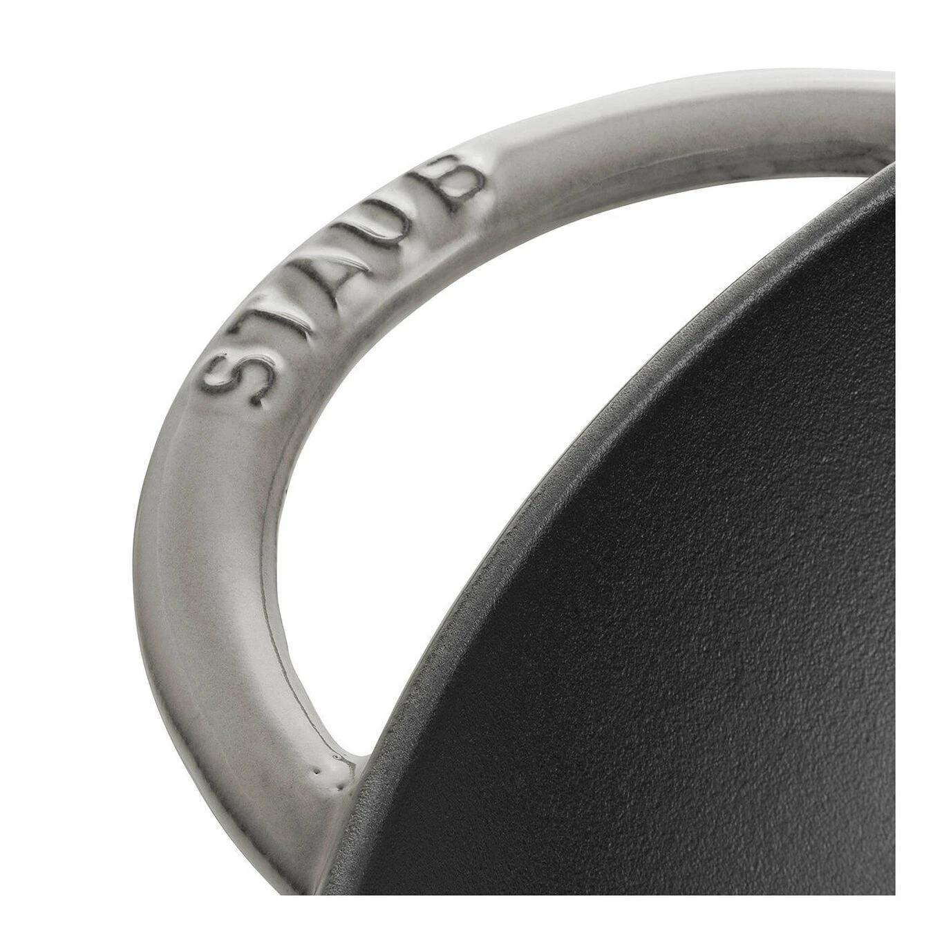 The wok pan from STAUB can be used to make original and novel recipes with fish, meat, tofu or vegetables from Asian cuisine: Ingredients are cooked particularly quickly by coming into contact with the hot cast iron on all sides as they are continually stirred and turned. This method of preparation allows vegetables to remain particularly crisp and at the same time retain more nutrients and vitamins than with conventional cooking in a pot. In addition to cooking rice noodle or vegetable pan-fried dishes, the wok is also excellent for preparing or warming up side dishes. The cast iron wok can be used on all types of cookers and in the oven. The tried-and-tested material not only optimally conducts heat, but also retains it and is, therefore, especially energy-saving. The pan shines in classic grey, making it an attractive addition to dining tables and in the kitchen.