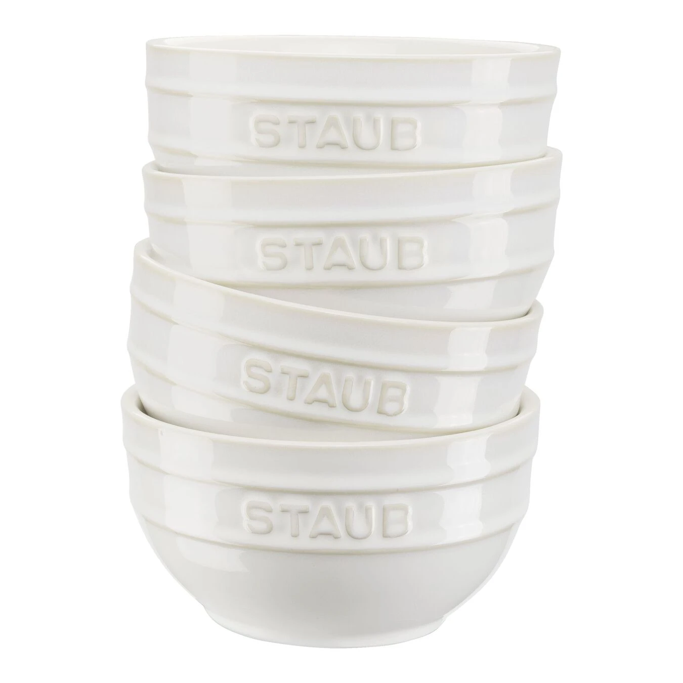 This set of four medium-sized bowls an elegant ivory white colour that highlights the delicious food. ?Their elegant and timeless design lets them fit in harmoniously with every table setting. The bowls are made from high-quality ceramic and hand-finished for perfect smoothness. Thanks to the enamelled coating, they are easy to clean as well as scratch and impact resistant. The bowls can be stacked for easy storage and put in the microwave as well as in the dishwasher.